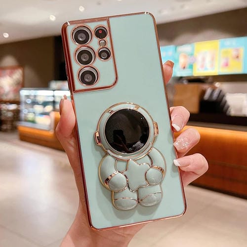 Estuche para Teléfono Samsung Galaxy S24 Ultra 5G Embrace Stars con Soporte Astronauta Galvanizado (Verde)