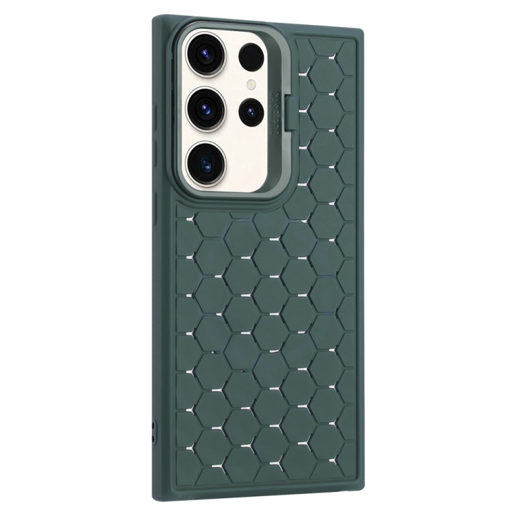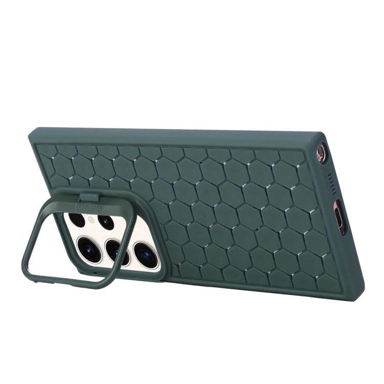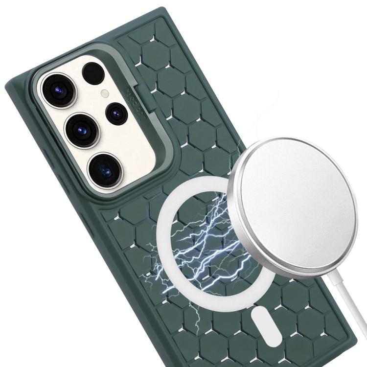 Estuche para Teléfono Samsung Galaxy S24 Ultra 5G Magsafe con Soporte para Lente Radiante en Forma de Panal (Verde)