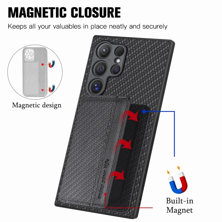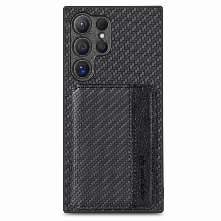 Funda para Teléfono Samsung Galaxy S24 Ultra 5G con Billetera y Bloqueo RFID de Fibra de Carbono (Negro)