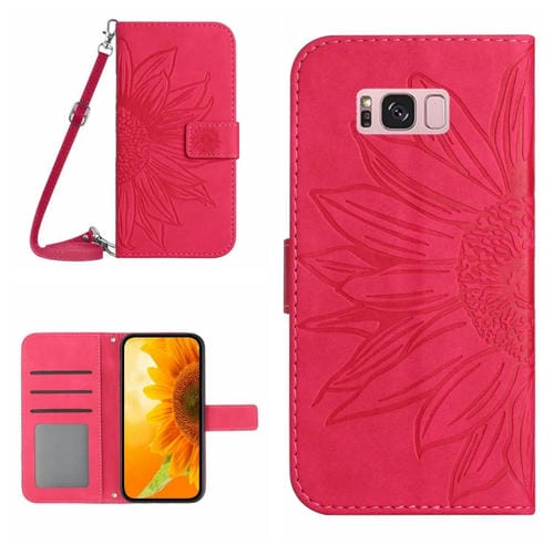 Funda Flip de Cuero Samsung Galaxy S8+ Skin Feel Sun Flower Pattern con Cordón (Rose Red)