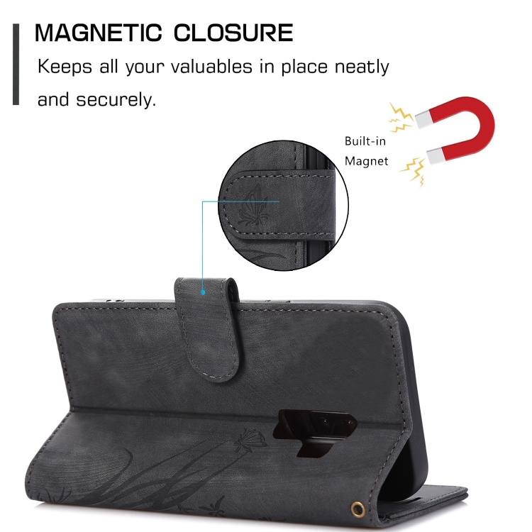 Funda para Teléfono Samsung Galaxy S9 Cuero con Relieve Mariposa Orquídea (Negro)