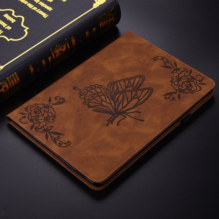 Funda para Tablet Samsung Galaxy Tab A 9.7 T550 T555 Cuero Relieve Flor Mariposa (Marrón)
