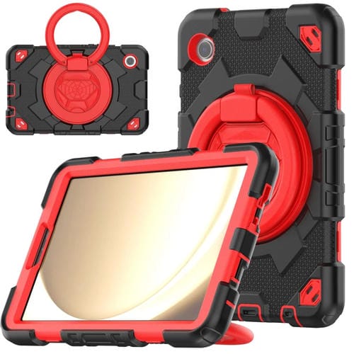 Funda para Tablet Samsung Galaxy Tab A9 Spider Rotation Handle Híbrida de Silicona para PC (Negro Rojo)
