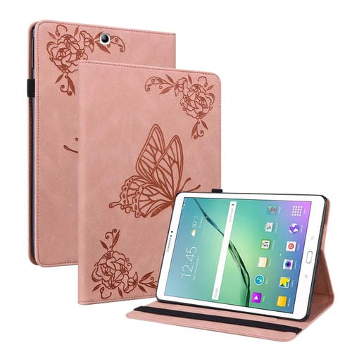 Funda para Tablet Samsung Galaxy Tab S2 9.7 T810 T815 Cuero Relieve Flor Mariposa (Oro Rosa)