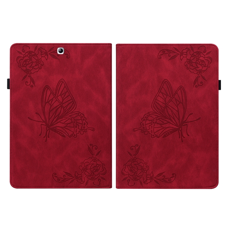 Funda para Tablet Samsung Galaxy Tab S2 9.7 T810 T815 Cuero Relieve Flor Mariposa (Rojo)