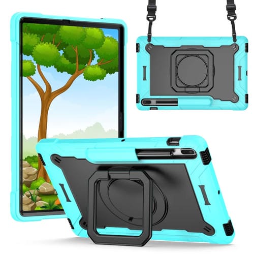 Funda Tablet Samsung Galaxy Tab S7+ S8+ S7 FE Silicone + PC Soporte Pulsera (Verde Menta + Negro)