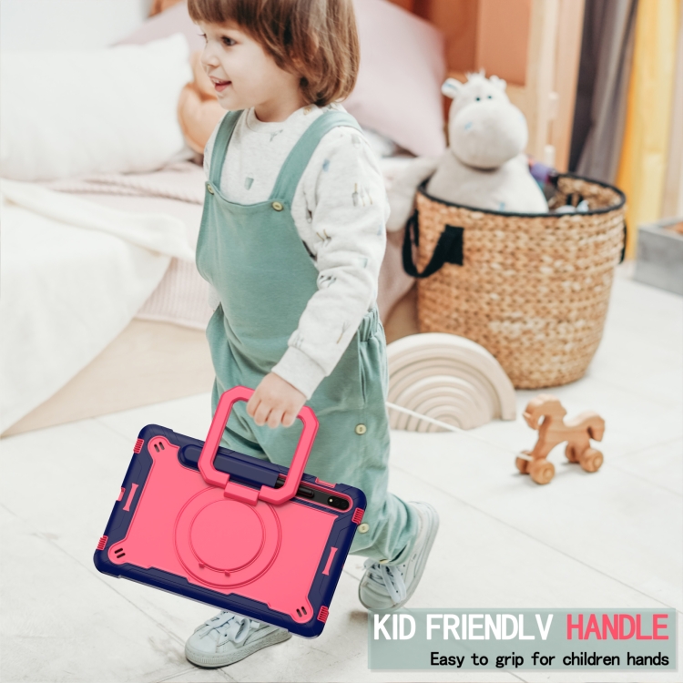 Funda Tablet Samsung Galaxy Tab S7 y S8 Silicone + PC Bracelet Holder (Azul Marino y Rosa Roja)