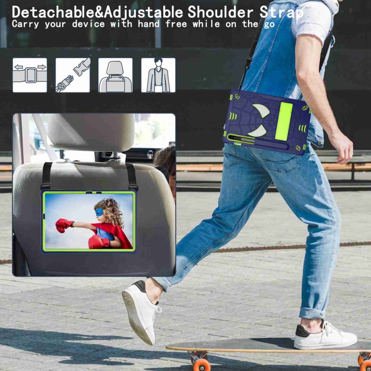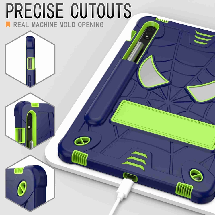 Funda Tablet Samsung Galaxy Tab S7 / S8 Spider Texture Silicone Hybrid PC con Correa para El Hombro (Azul Marino + Amarillo Verde)