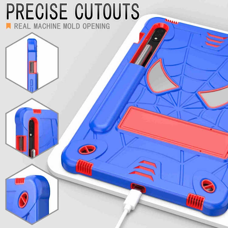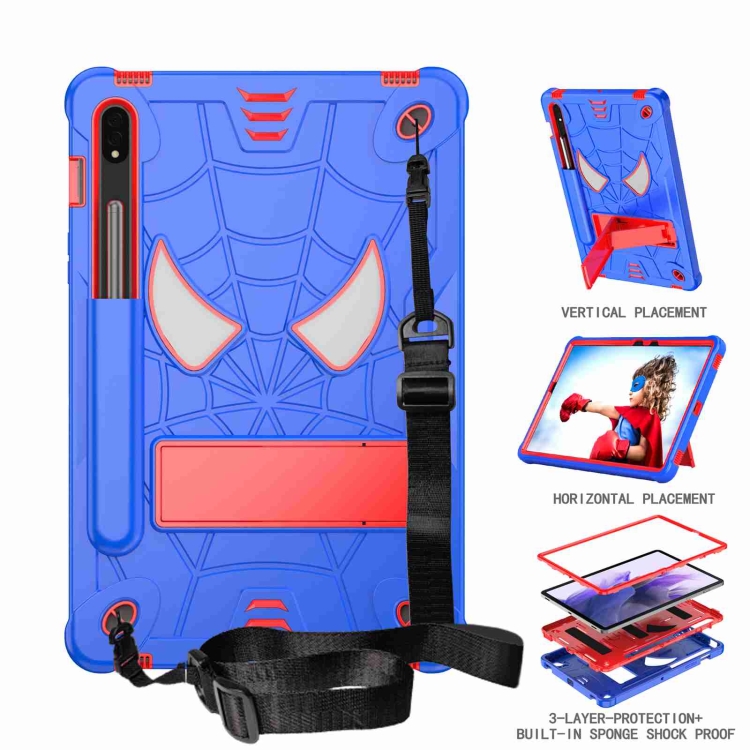 Funda Tablet Samsung Galaxy Tab S7 / S8 Spider Texture Silicone Hybrid con Correa para El Hombro (Azul + Rojo)