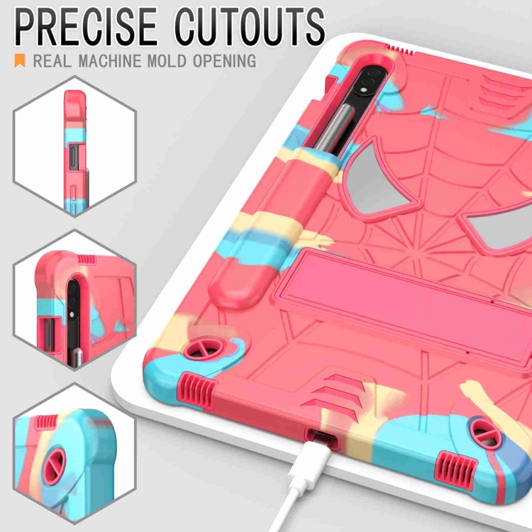 Funda Tablet Samsung Galaxy Tab S7 / S8 Spider Texture Silicone Hybrid con Correa para El Hombro (Camuflaje + Rosa Roja)