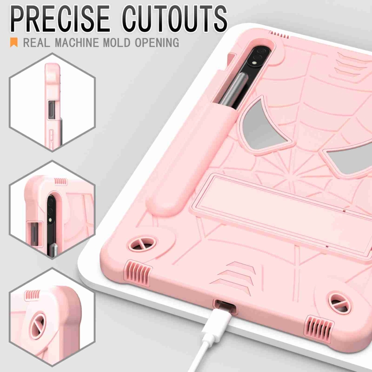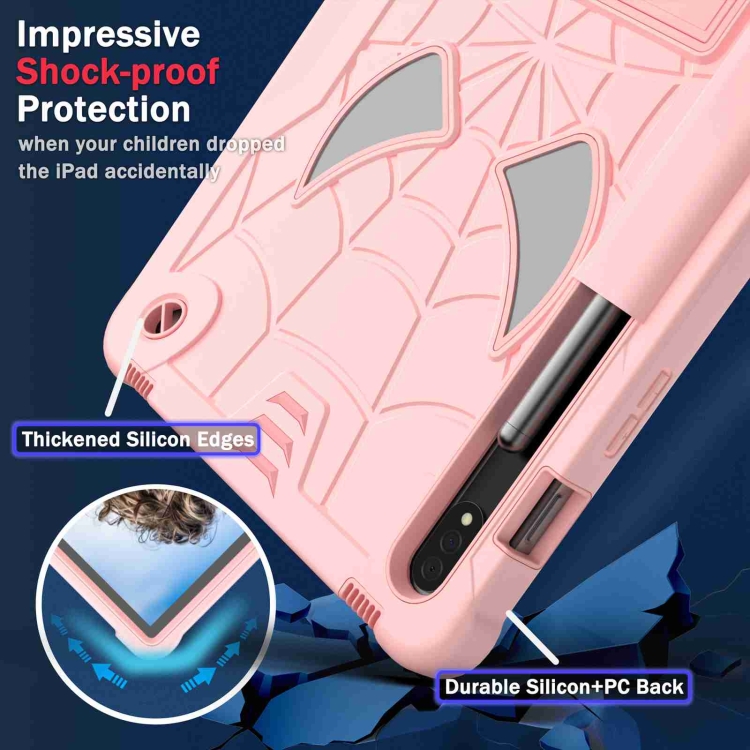 Funda Tablet Samsung Galaxy Tab S7 / S8 Spider Texture Silicone Hybrid PC con Correa para El Hombro (Oro Rosa)