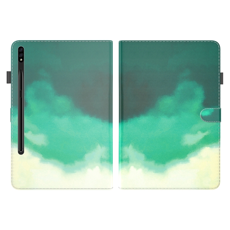 Funda para Tablet Samsung Galaxy Tab S8 Plus / Tab S7 FE / Tab S7 Plus 12.4 Pulgadas T970 T976B Patrón Acuarela Magnética (Cian Green)