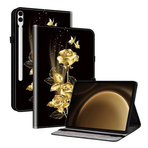 Funda para Tablet Samsung Galaxy Tab S9+ / S9 Fe+ Cuero Pintado Textura de Cristal (Mariposa Dorada Rosa)