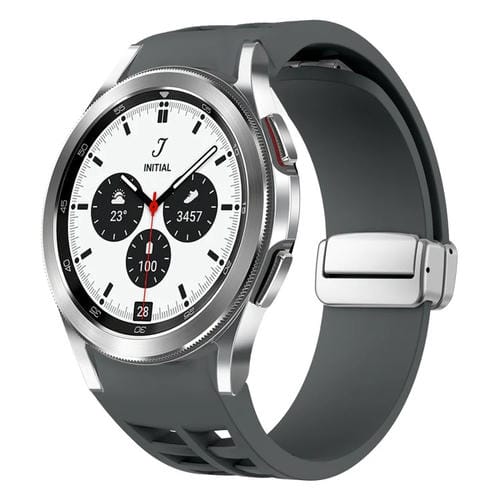 Correa de Silicona para Samsung Galaxy Watch 4 Classic 42/46mm Richard con Hebilla Plateada Plegable Magnética (Gris Espacial)