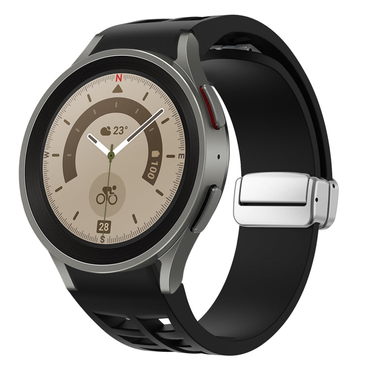 Correa de Silicona para Samsung Galaxy Watch 5 Pro 45mm con Hebilla Plateada Plegable Magnética (Negro)