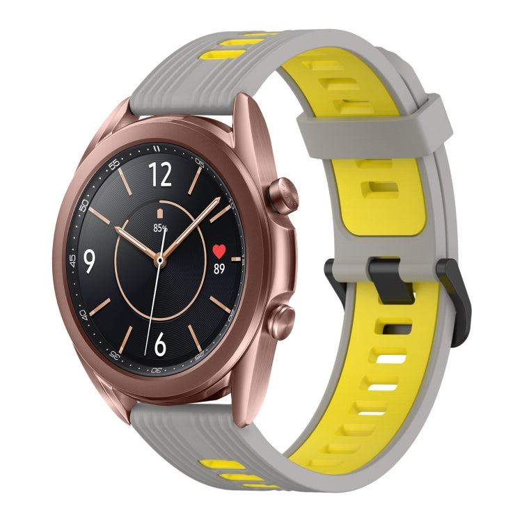Banda de Reloj silicona para Samsung Galaxy Watch3 41mm 20mm patrón vertical dos colores (Gris+Amarillo)