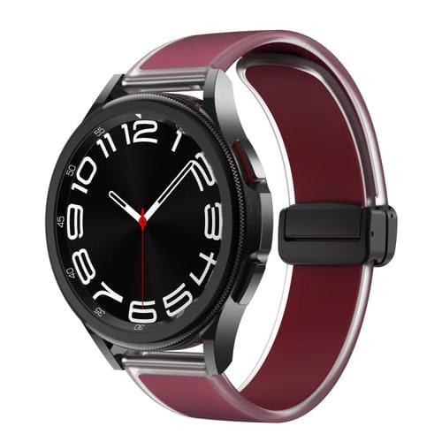 Correa de Silicona para Samsung Galaxy Watch6/5/4 con Hebilla Negra Magnética Translúcida (Rojo Vino)