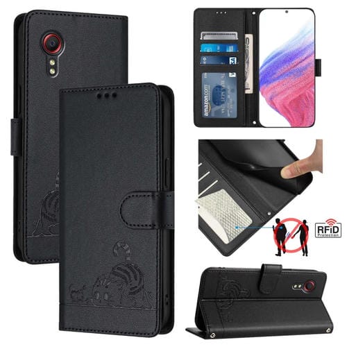 Estuche para teléfono Samsung Galaxy Xcover 5 Cuero Rfid Patrón en Relieve y Cordón (Negro)