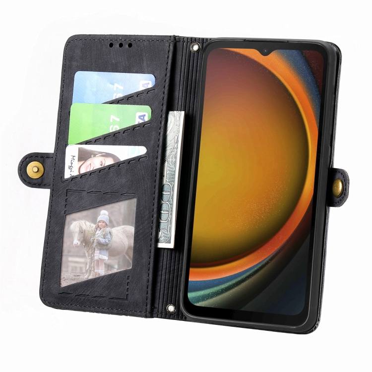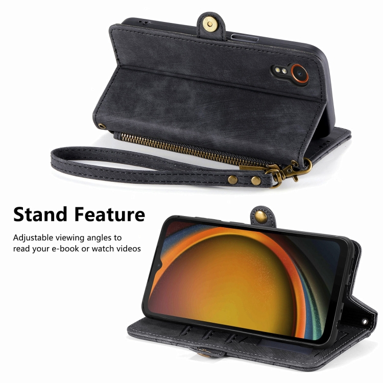 Estuche para Teléfono Samsung Galaxy Xcover 7 Cuero con Hebilla Lateral y Billetera con Cremallera (Negro)