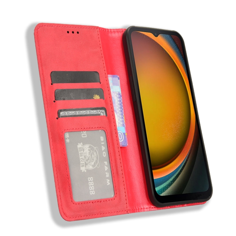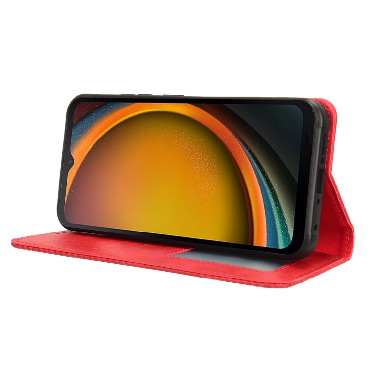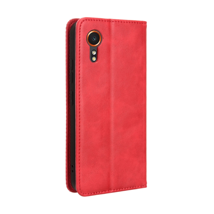 Funda para Teléfono Samsung Galaxy Xcover 7 Cuero Textura Retro con Hebilla Magnética (Rojo)