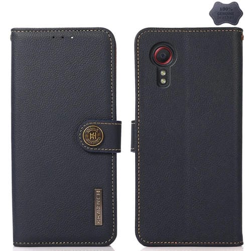 Funda para Teléfono Samsung Galaxy Xcover7 Khazneh Custer Rfid Cuero Genuino (Azul)