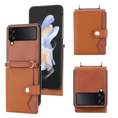 Funda para Samsung Galaxy Z Flip3 5G con Tarjetero y Cordón Largo (Marrón)