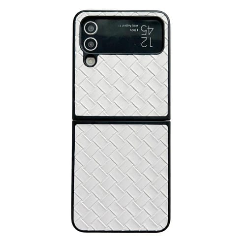 Funda plegable para Samsung Galaxy Z Flip3 de PU con textura tejida (Blanco)