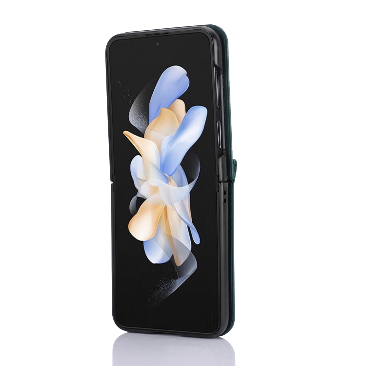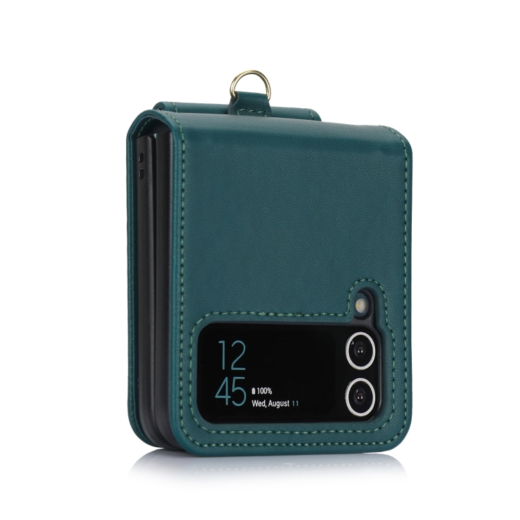 Estuche plegable Samsung Galaxy Z Flip4 con ranuras para tarjetas y cordón largo (Verde)
