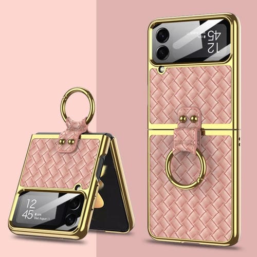 Funda Protectora Samsung Galaxy Z Flip4 Gkk Weave Texture Galvanoplastia (Oro Rosa)