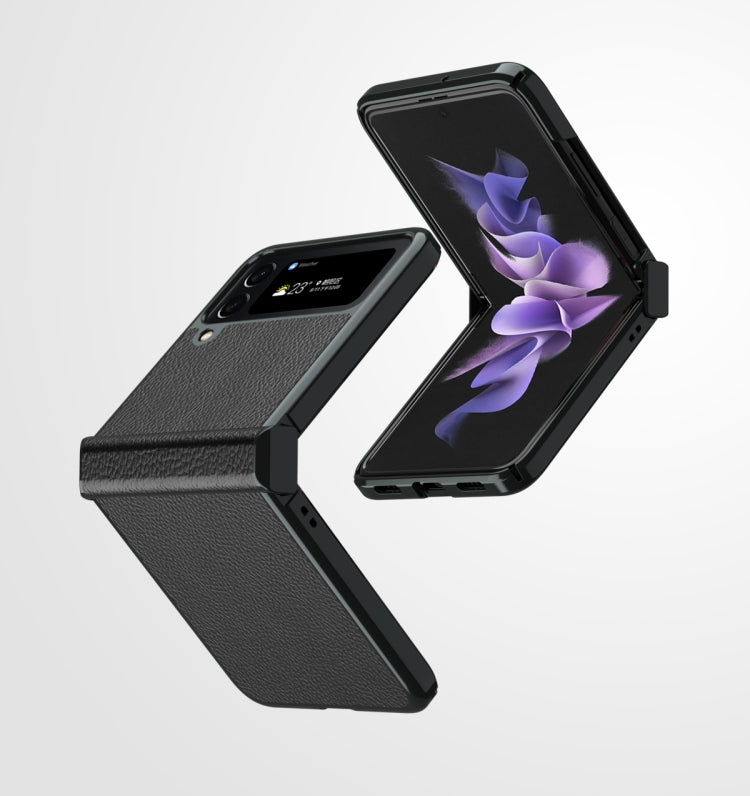 Para Samsung Galaxy Z Flip4 Litchi Texture Leather Metal Frame Bisagra Funda para teléfono (Negro)