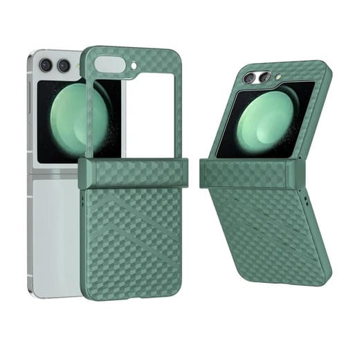 Estuche para teléfono Samsung Galaxy Z Flip5 5G 3 en 1 con PC mate patrón de onda y bisagra (Verde Oscuro)
