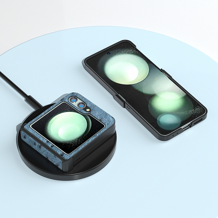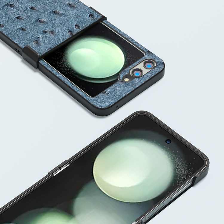 Funda para teléfono Samsung Galaxy Z Flip5 Abeel Hinge textura de cuero genuino (Azul)