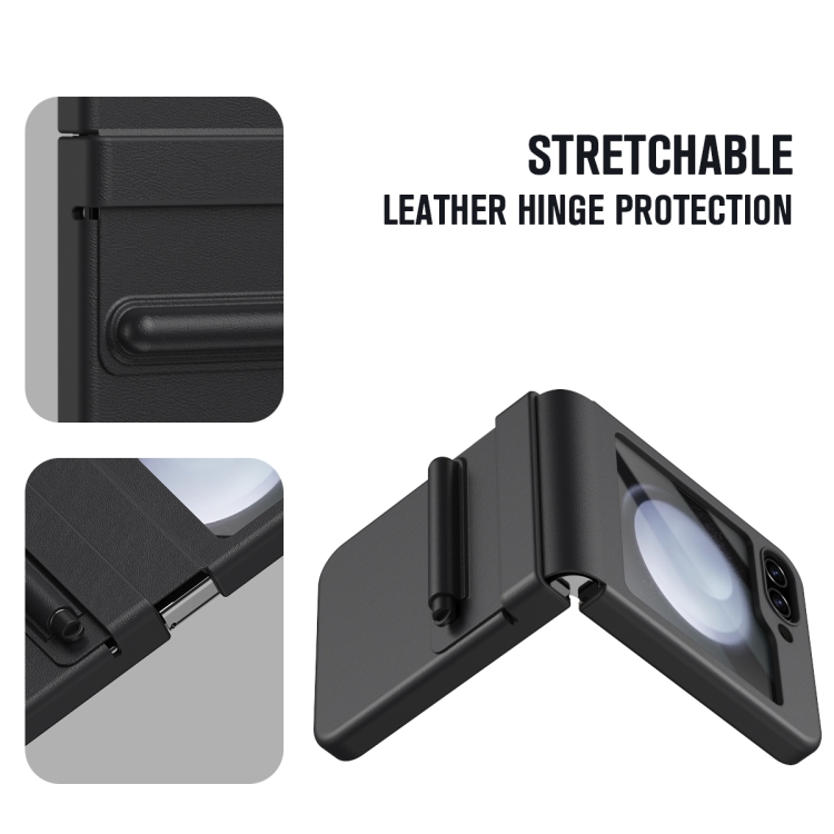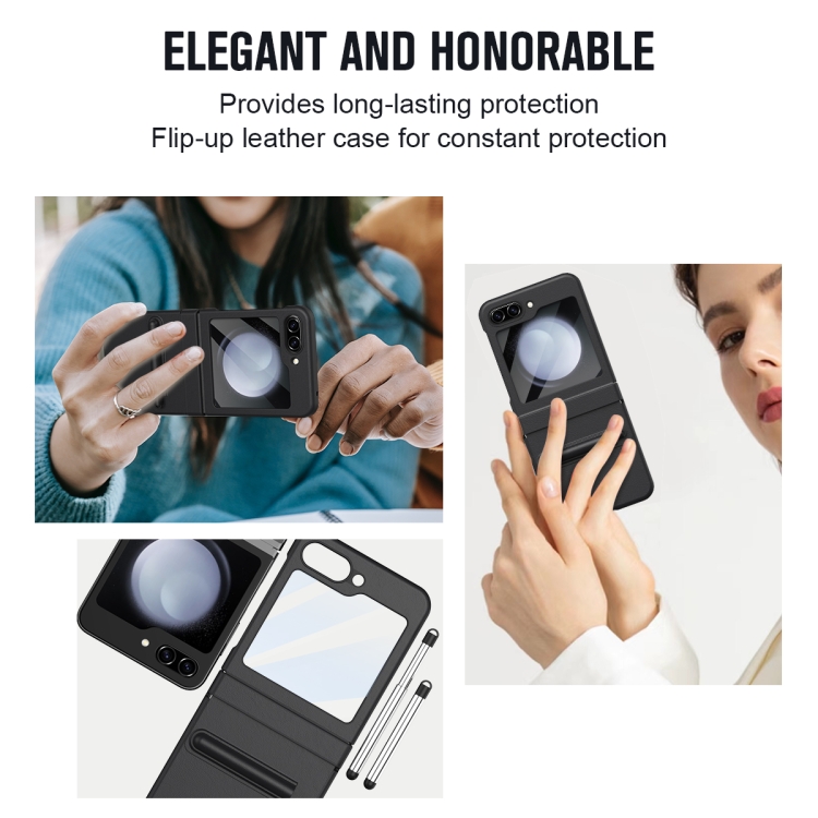 Estuche para Teléfono Samsung Galaxy Z Flip5 PU + PC Cobertura Total con Ranuras para Bolígrafo (Negro)