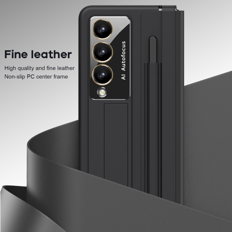 Estuche para teléfono Samsung Galaxy Z Fold4 5G Cobertura total integrado PU + PC con ranuras para bolígrafo (Negro)