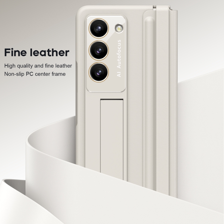 Funda para Teléfono Samsung Galaxy Z Fold5 5G Textura Cuero Pu + PC Cobertura Total (Blanco)