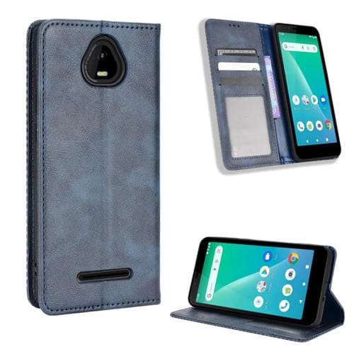 Funda Telefónica Schok Volt Sv55 / Sv55216 Hebilla Magnética Cuero Textura Retro (Azul)