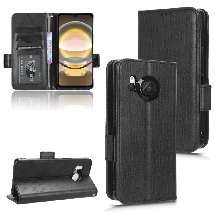 Funda de Cuero para Sharp Aquos R8 con Patrón de Triángulo Simétrico (Negro)