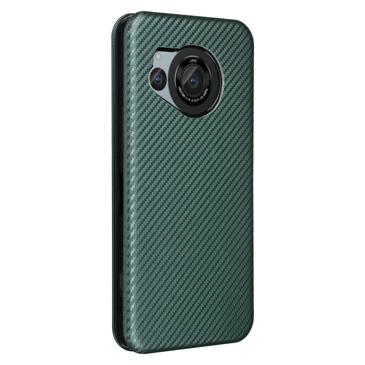 Funda de Cuero para Sharp Aquos R8 con Textura de Fibra de Carbono (Verde)