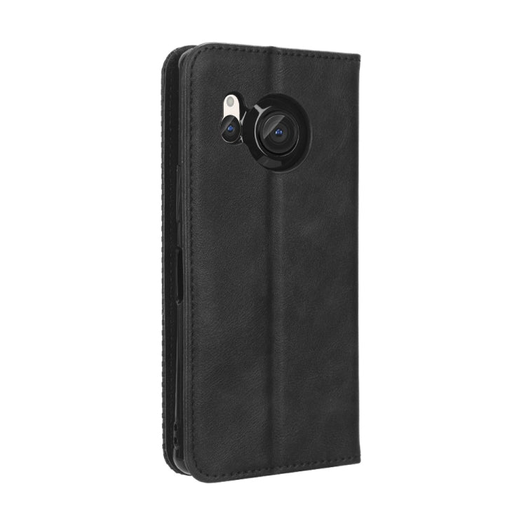 Funda de Cuero para Sharp Aquos R8 con Hebilla Magnética y Textura Retro (Negro)
