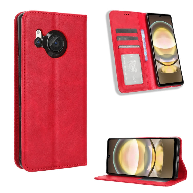 Funda de Cuero con Hebilla Magnética para Sharp Aquos R8 Textura Retro (Rojo)