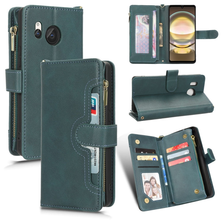For Sharp Aquos R8 Litchi Texture Zipper Leather Phone Case(Green)