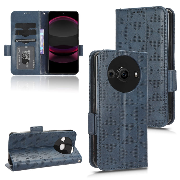 Funda de Cuero para Sharp Aquos R8 Pro con Patrón Triángulo Simétrico (Azul)