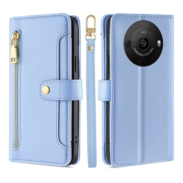 Funda de Cuero para Sharp Aquos R8 Pro Sh-51 Lite con Textura Sheep y Cremallera (Azul)