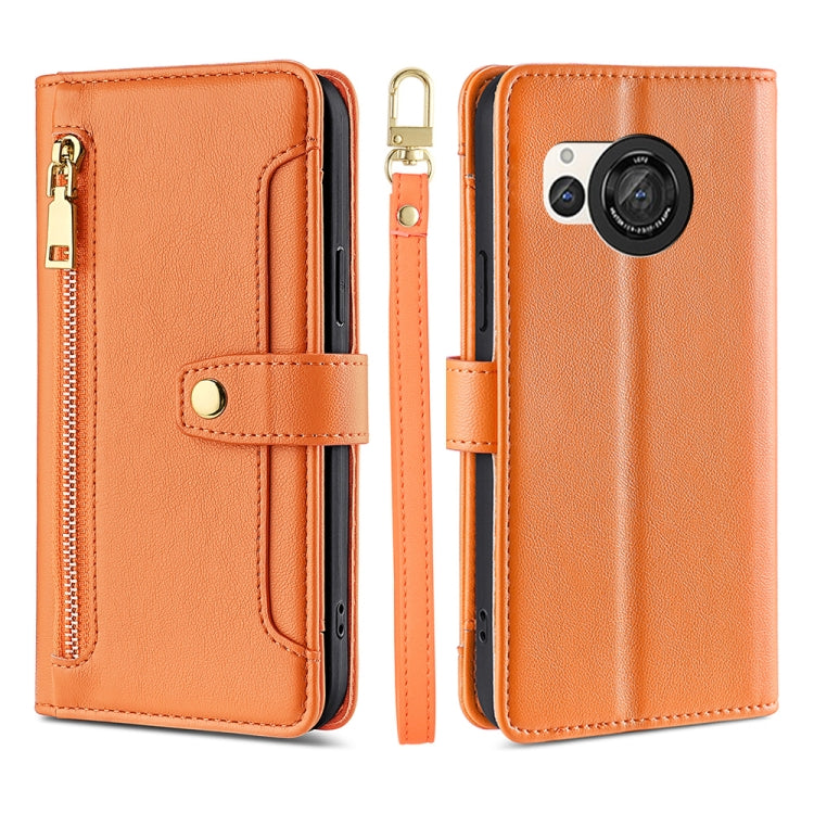 Funda de Cuero para Sharp Aquos R8 Sh-52D Lite con Textura Sheep y Cierre de Cremallera (Naranja)