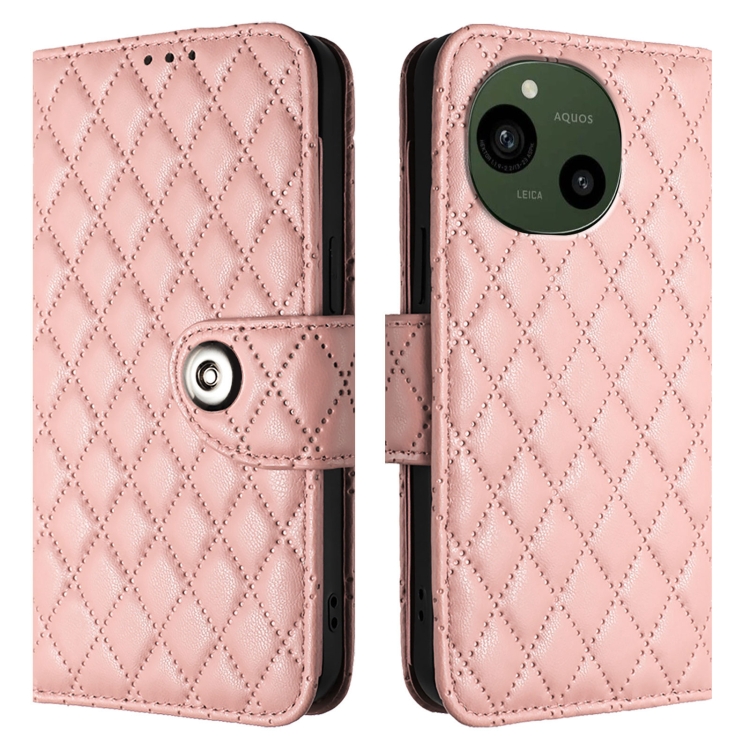 Funda para Sharp Aquos R9 Sh-51E con Tapa de Cuero Textura Rómbica y Cordón (Rosa Coral)