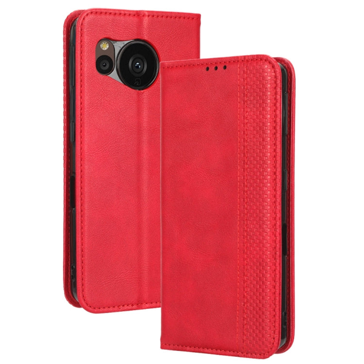 For Sharp Aquos Sense7 Plus Magnetic Buckle Retro Texture Leather Phone Case(Red)