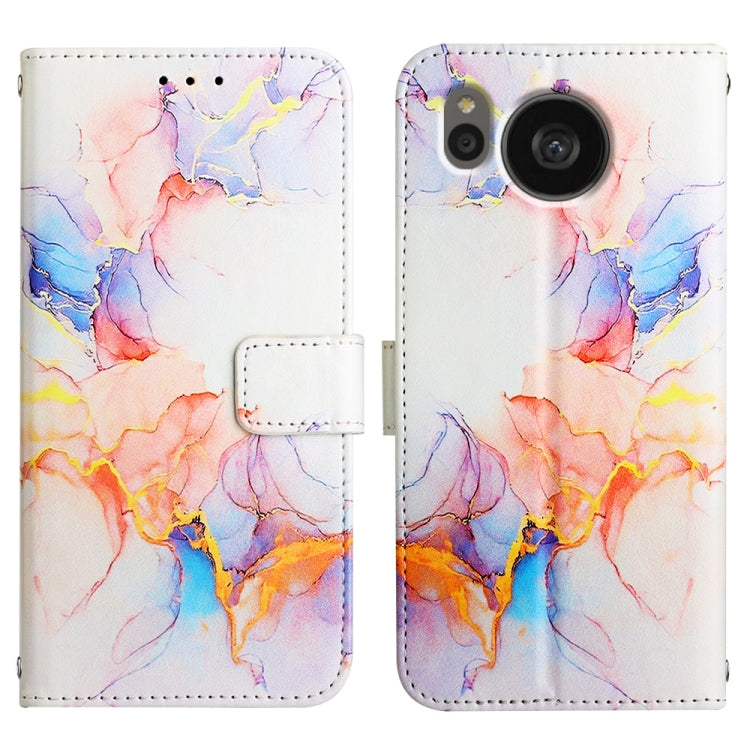 Funda Flip de Cuero para Sharp Aquos Sense7 Plus Pt003 con Patrón Mármol (Blanco)