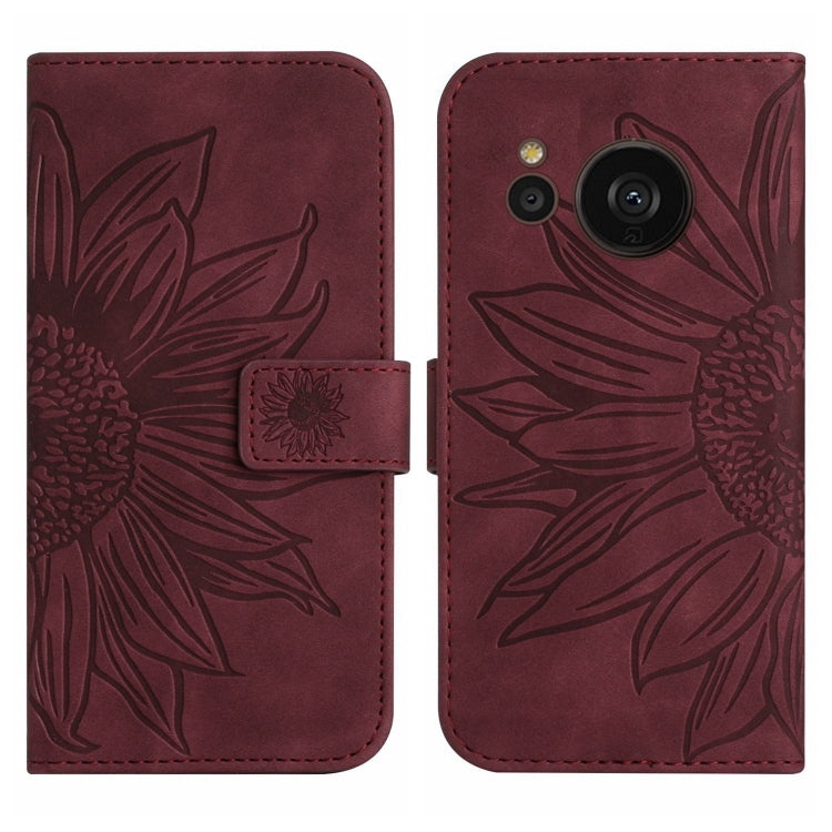 Funda Flip de Cuero para Sharp Aquos Sense7 Sh-V48 Ht04 con Cordón y Diseño Sun Flower (Rojo Vino)