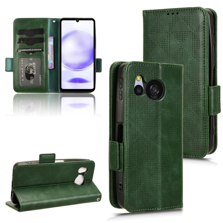 Funda de Cuero para Sharp Aquos Sense8 con Patrón de Triángulo Simétrico (Verde)