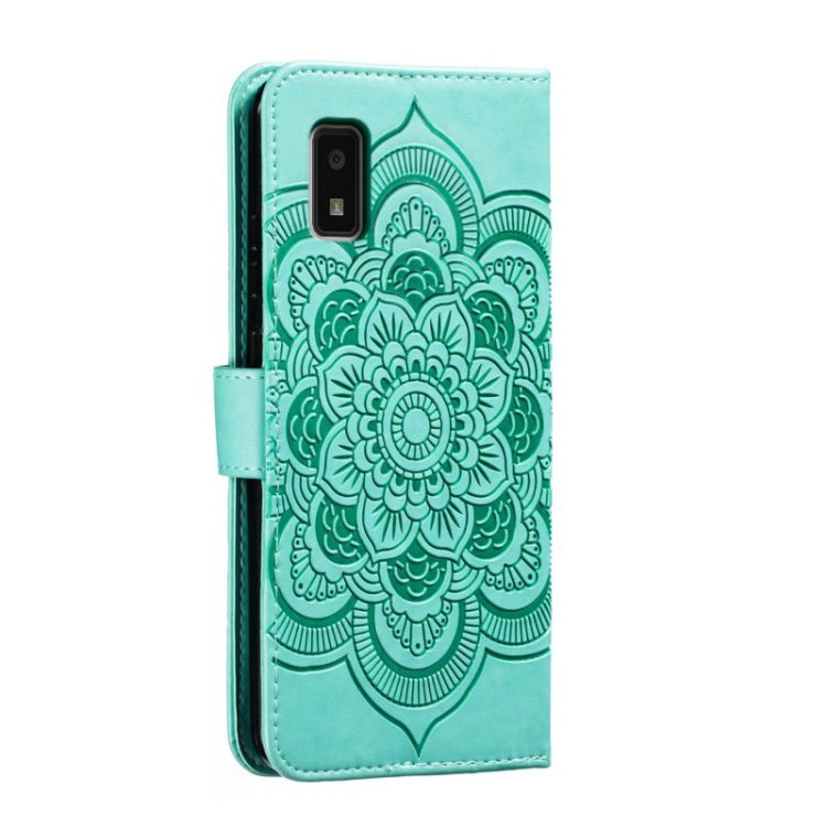 Funda de Cuero para Sharp Aquos Wish con Patrón Mandala Sun en Relieve (Verde)